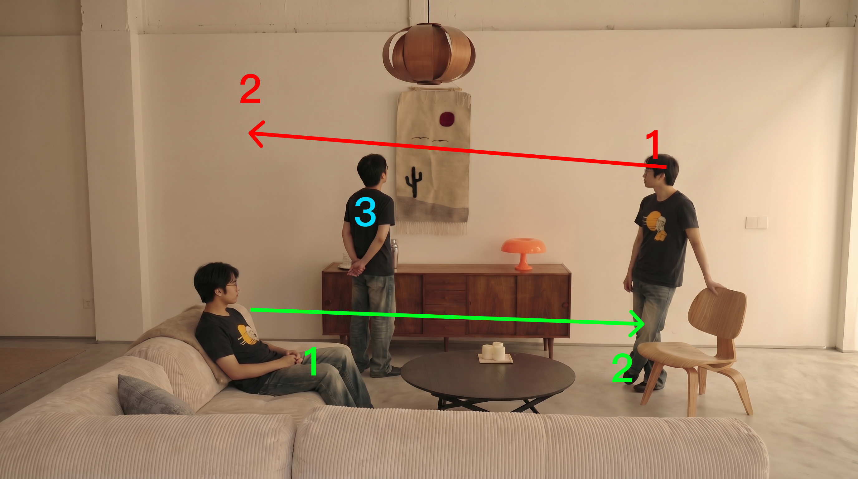 如果画面中需要出现两个或更多的人,且他们有不同的特征和站位,该怎么办?如果只是简单地画两个一样颜色的框,AI很可能会混淆